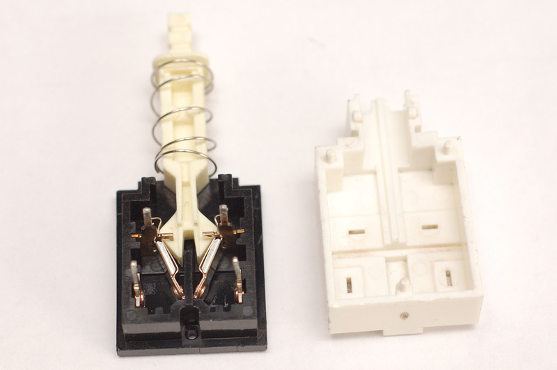 Победителем стал Alps SDS-1, но он б/у, поэтому я решил его разобрать и сделать обслуживание. Внутри обнаружилась копоть, контакты прилично подгорели. Копоть отмыл, контакты зачистил. Вот так он выглядит изнутри:
