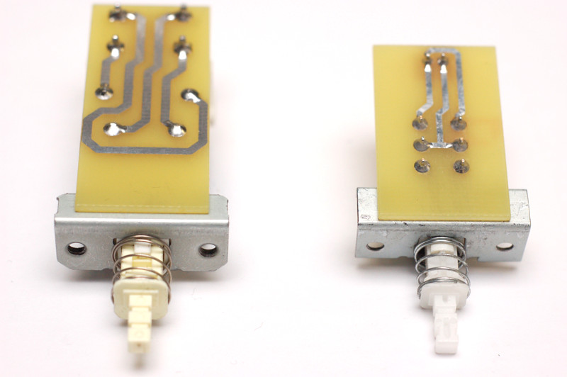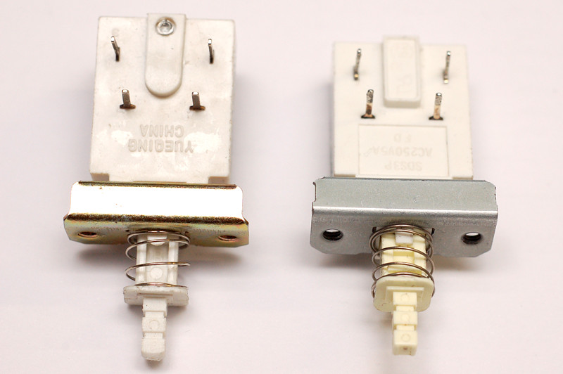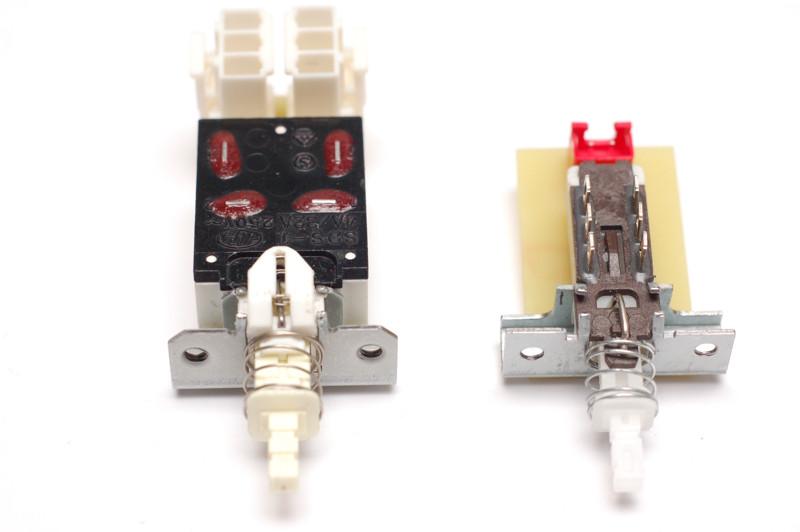 Долго страдал выбором сетевого выключателя. Сначала поставил компьютерный. Более-менее нормально, значительно лучше нашего ПКН-41. Потом в Ктиае были куплены KDC-A11-2. Если заменить пружину, тоже очень приличные. Они фактически клон Alps SDDF-3. Добыл настоящий Alps, он ощутимо мягче. Еще попался KDC-A06, клон Alps SDS-1. На удивление, почти не уступает оригиналу. Но SDS-1 по мягкости вне конкуренции. На фото выключатели в перечисленном порядке: