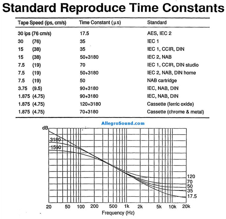 У меня записи на 19-й скорости. А на 9-й, что для NAB, что для IEC- стандарт один- 90мс.