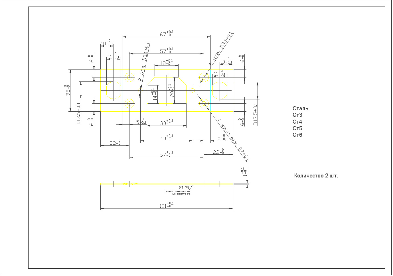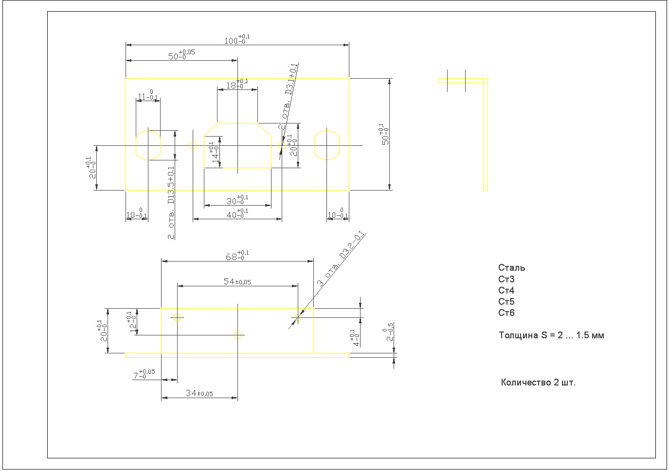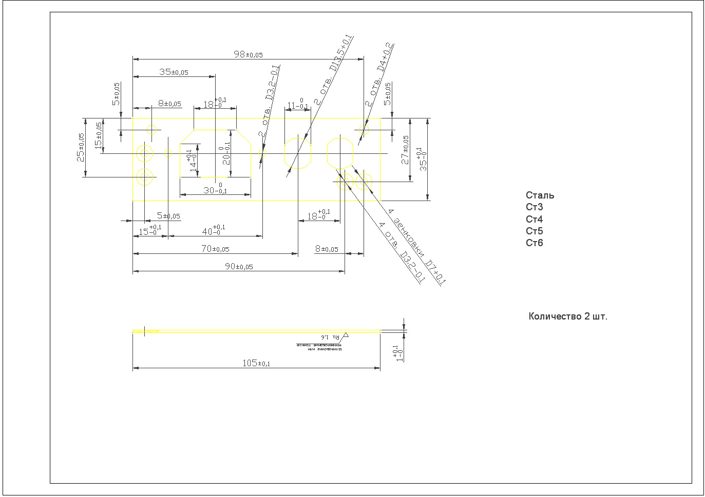 Чертеж держателя разъема электропитания и предохранителедержателей для Электроники ТА1-003 и Олимп-003.