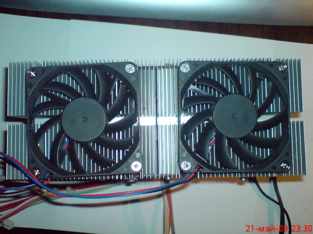 Радиаторы от теристоров по 1200 кв. см 2 штуки, получается 600 кв. см на одну микросхему + кулер вполне достаточно. Только я без слюды их посадил, а это голяк! до первого попадания земли на радиатор гг