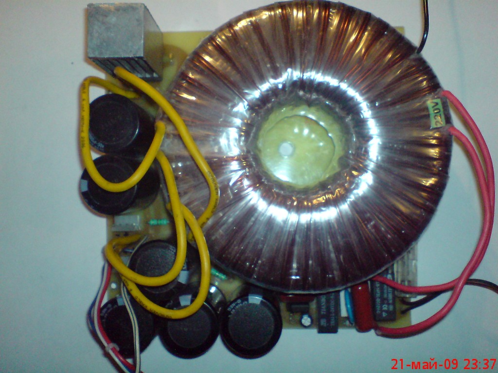 Потом еще поставил сопротивления(1 ом 2вт) по сигнальной земле на самих усилителях, у меня 2 цепи земли одна силовая и одна сигнальная и все это приходило на блок питания. После этого фон вобще пропал.