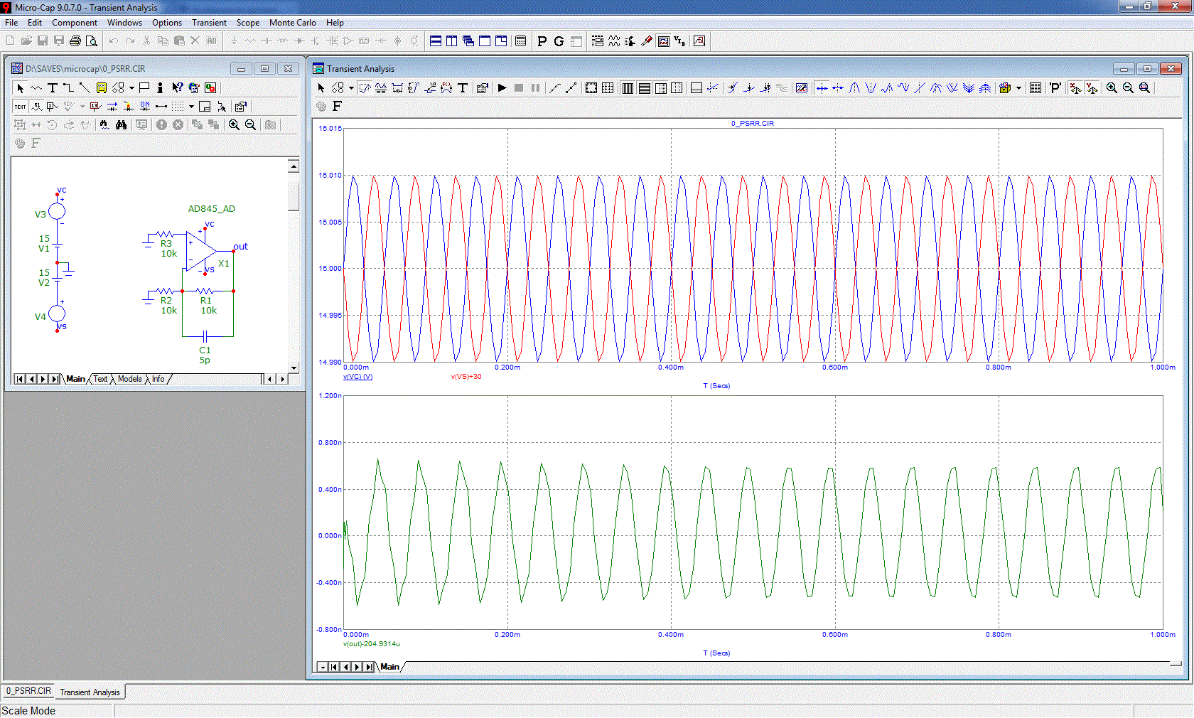 3. Вспоминаем, что PSRR работает при синфазном изменении модулей питающего напряжения;