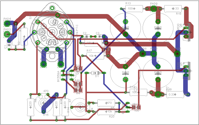 Добавил конденсаторы, поставил номиналы по схеме. Немного сомневаюсь в схеме включения подстроечника под лампой.