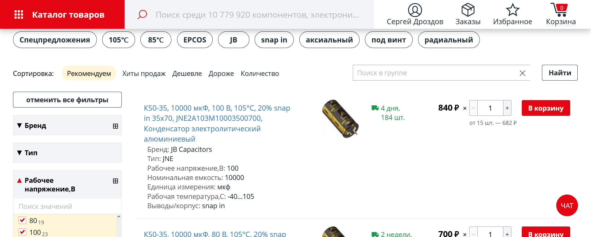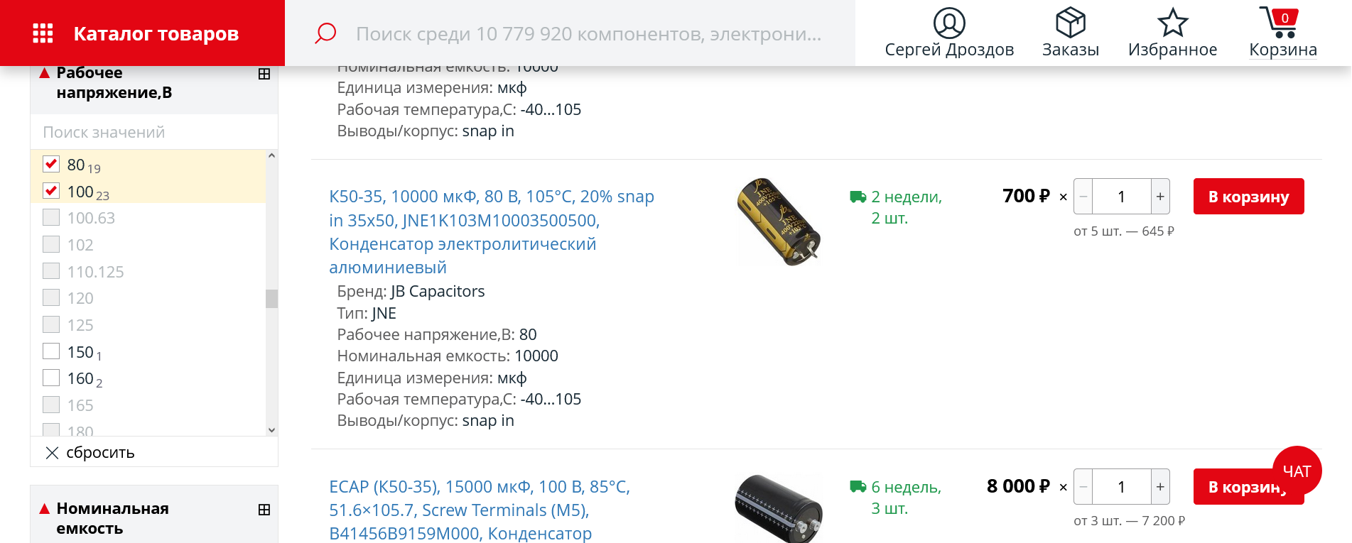 Как-то Вы не отреагировали на предложенные К50-35 (ну да, первые, что по ссылке нагуглил,