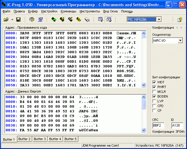 ID:	101444 всё верно (htc_628_4NS.hex) ? При включении устройства с установленным контроллером светодиод STB не горит, D1-D4 тоже не моргают при включении и нажатой SW1. Сразу после включения на выводе 6 контроллера какое напряжение должно быть ?