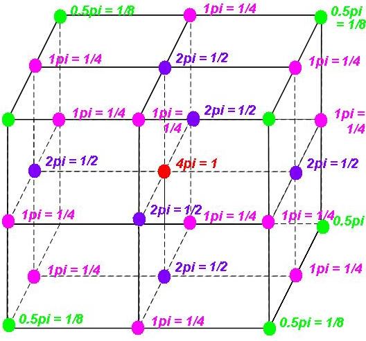А чего там бродить-блудить... Полный телесный (объемный) угол излучения - 4pi. Представьте громкоговоритель подвешенным на стальной нити высоко над землей или на высокой узкой ферме - это оно и есть - 4pi. Теперь, представьте, что громкоговоритель поставили на пол посреди просторного танцзала, или прислонили к вертикальной стене высоко над полом - это 2pi. А если посередине (не в углу) на перпендикулярном стыке пола и стены - 1pi (стык пола и стены размером более волны излучения). А теперь осталось добавить еще третью плоскость, взаимно перпендикулярную к двум имеющимся - получаем обычный угол - 0,5pi.