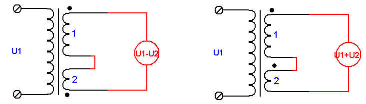 Что же касается рисунков - я не могу придумать, как на одном рисунке это показать. Ведь если нарисовать начала обмоток, то это уже будет однозначный ответ - правильно или неправильно они включены. Зачем тогда вольтметр нужен? Я подумывал нарисовать двойной рисунок вот такого типа: