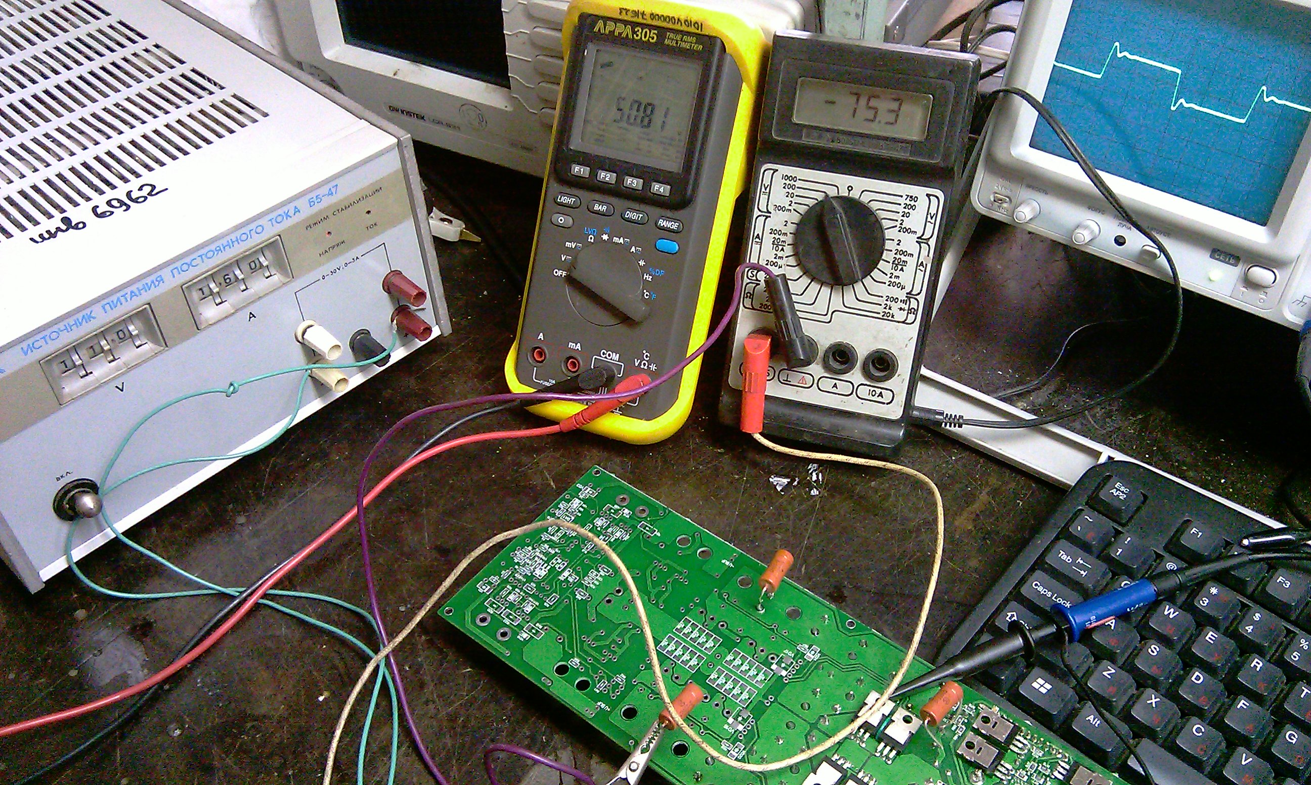 Желательно проверить изменения выходных напряжений в диапазоне токов нагрузки выходов питания УН и ВК соответственно 30...70 мА и 0,3...3 А (нагружать одновременно все 4 выхода) при минимальном и максимальном входном питающем напряжении.