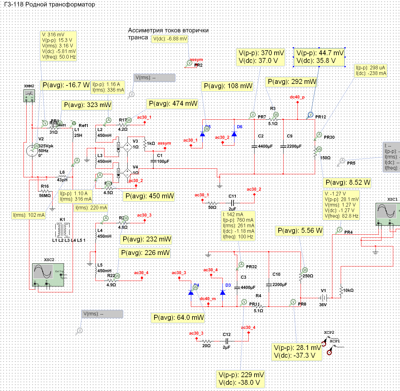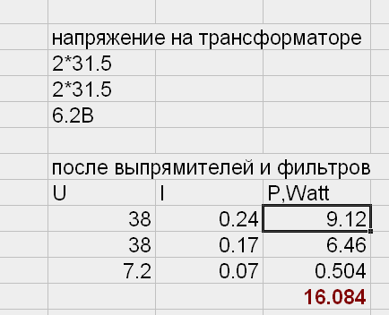 Измеренные токи на живом генераторе и расчет потребляемой мощности с родным трансом