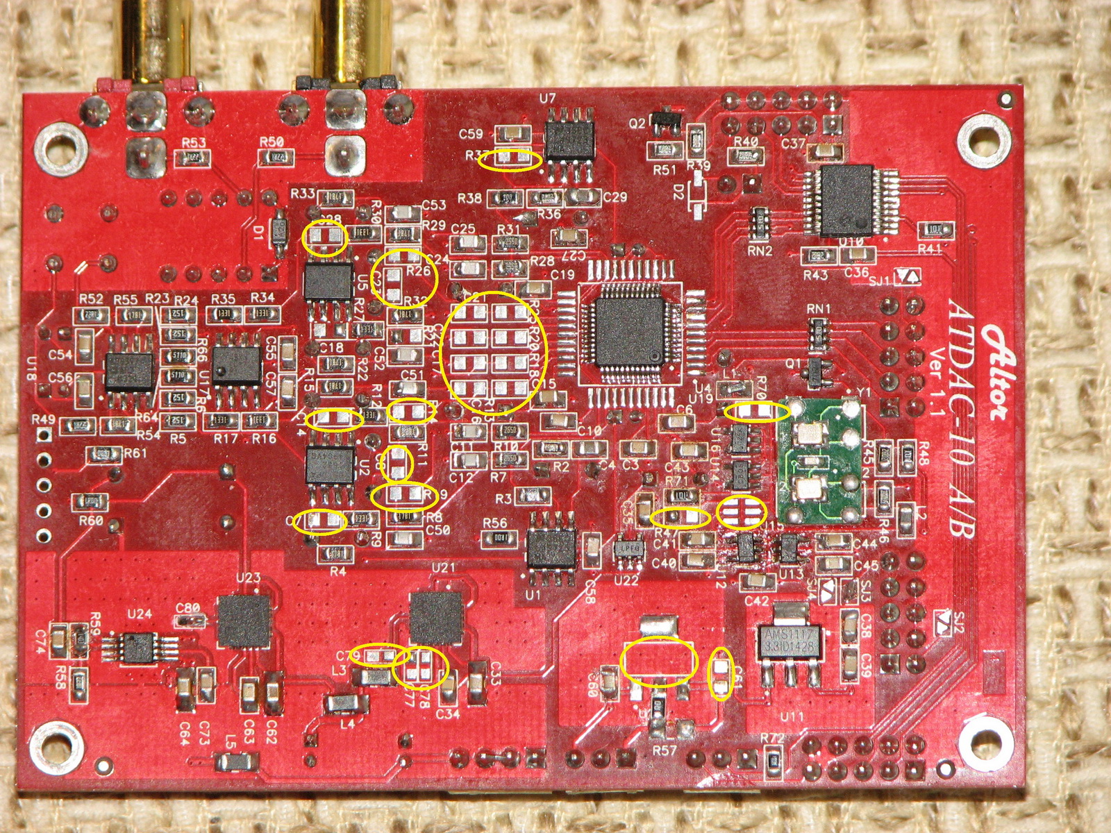 Плюс там есть несколько опций, например для разной частоты осцилляторов (512fs или 1024fs) и напряжений питания "выхлопа". Отсюда и пустые места под детали.