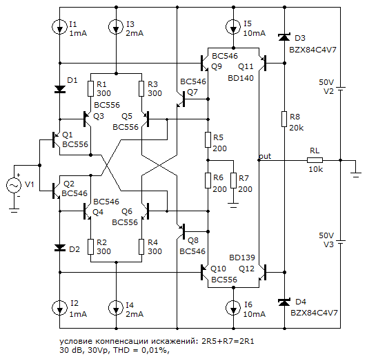 оказывается надо было городить такой гибрид чтобы получить 0,05% искажений с сомнительной нагрузочной способностью при 20 В (пик).