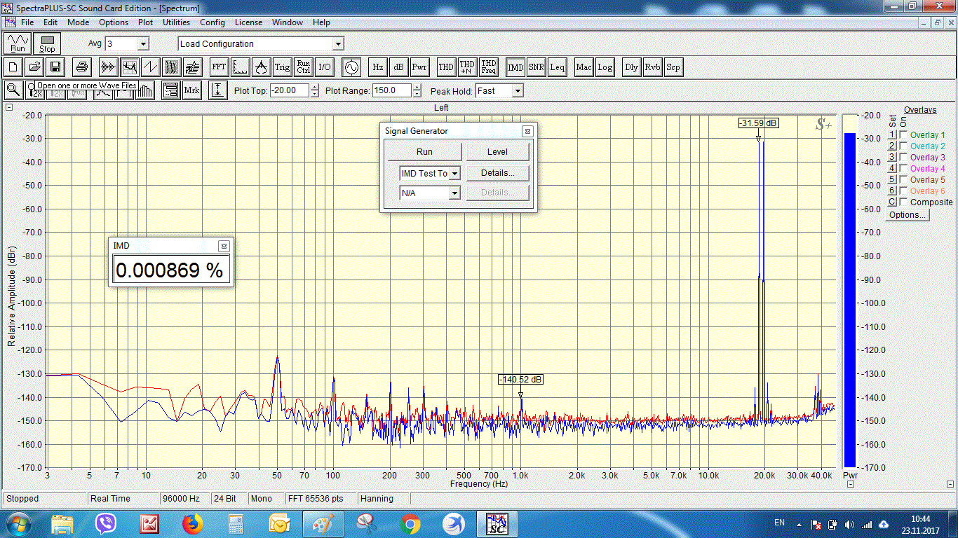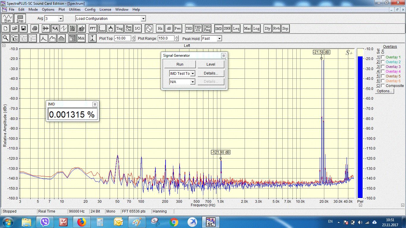 Добавлю измерений ИМД в режиме 18,5к+19,5к 1/1. Нагрузка все та же: 3,3 Ом, делитель около 1/10.