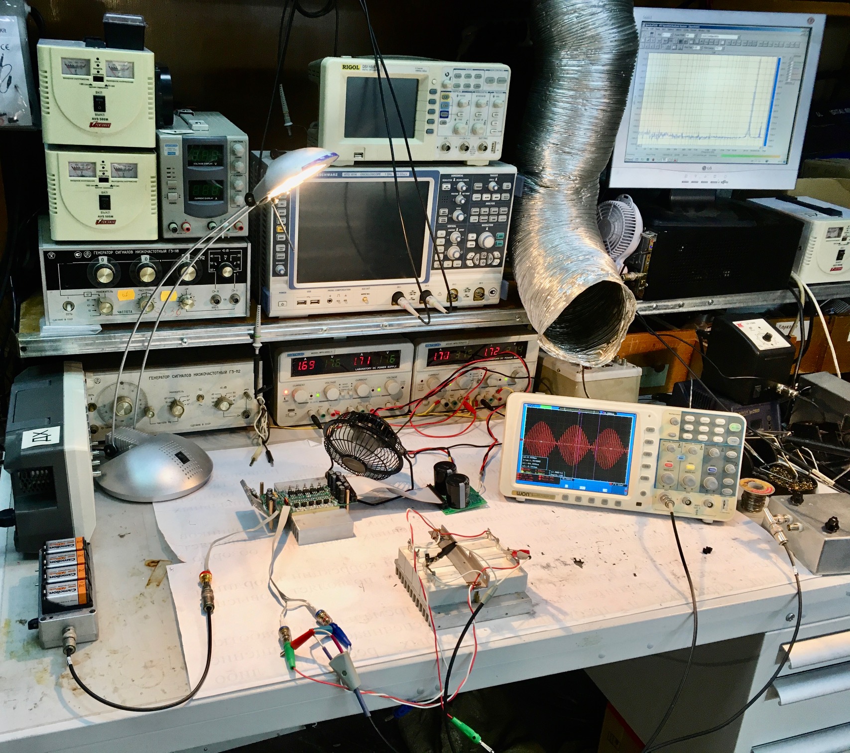 Результаты измерений для нагрузки 4 Ом, монопетля, амплитуда суммарного сигнала - 30 В (мощность ~56 Вт):