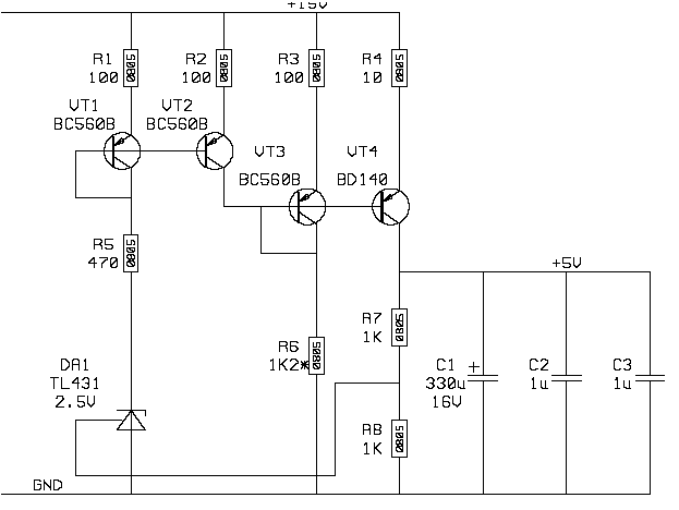 В итоге получается так же громоздко, как ИОН+ОУ+транзистор.