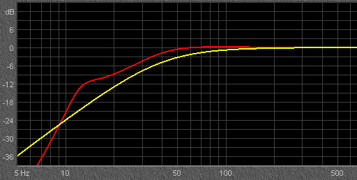 в результате накладываем 12 дБ/октава Линквица и получаем ровную линию ( желтый для ЗЯ, красный ФИ на 16 Гц)