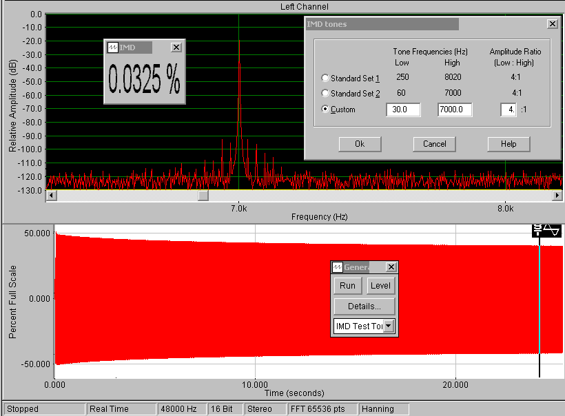 Ниже замеры интермодуляционных искажений, связанных с нелинейностью импеданса звуковой катушки ДГ. Замеры по току через звуковую катушку на ИТУНе и ИНУНе -