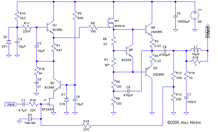 Это не проверенная схема, а только концепция, которую я набросал за час. Если кому будет не лень просимулировать - замечательно. Разумеется, что у этой схемы есть масса недостатков. Тем не менее, не исключено, что при некоторой оптимизации номиналов она будет очень неплохо звучать