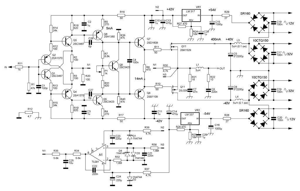 Такая организация питания позволила использовать стабилизаторы 317/337.