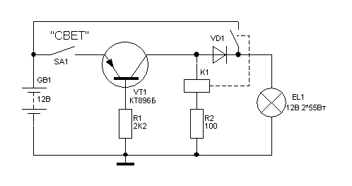 Есть возможность подавать напряжение управления (с выключателя) как положительное, так и отрицательное, но минус фар при этом обязательно должен быть все время на массе.