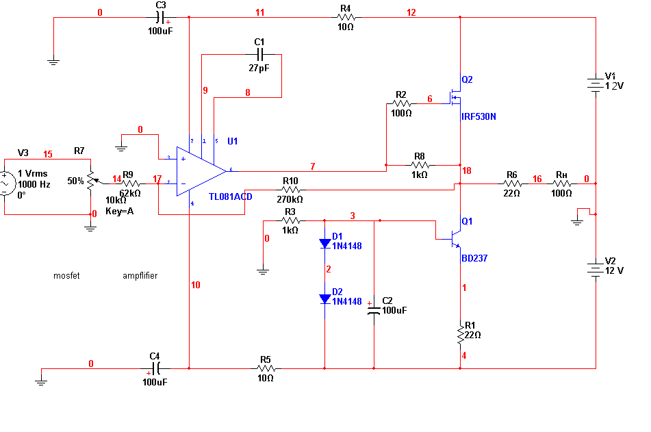 Автор усилителя рекомендует в истоковые цепи транзисторов дифкаскада установить подстроечное сопротивление номиналом 100 ом.