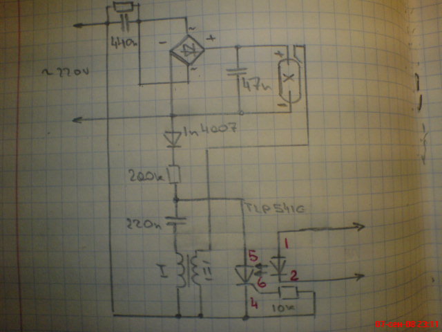 И еще, у TLP541 выведен наружу управляющий электрод тиристора. Он используется или просто через резистор к ее катоду подключен?
