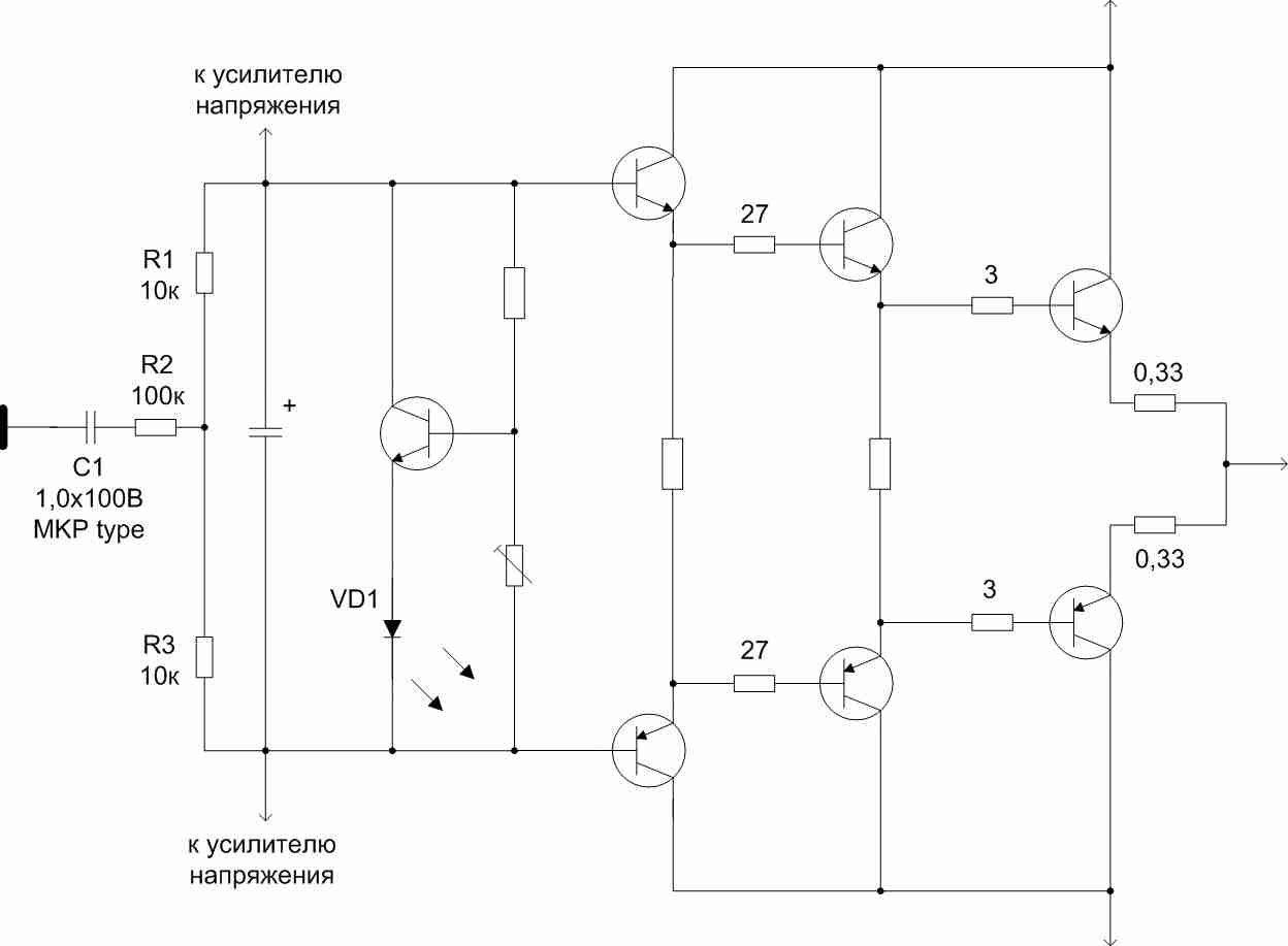 Светодиод VD1 убирает изменения напряжения смещения от саморазогрева транзистора источника смещения