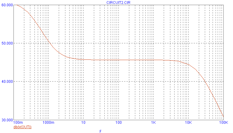 Во вложенной схеме добавлен конденсатор С1, который делает усиление по постоянному току максимально возможным