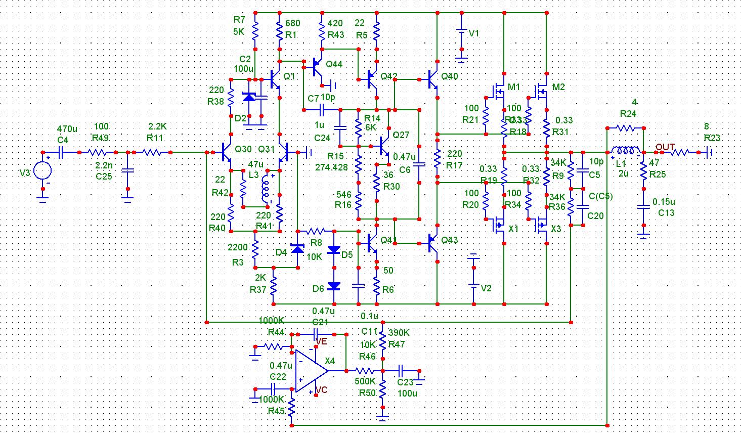 Схема содержит узлов, деталей и решений, не нужных усилителю низкого класса и не улучшающих его звучание.