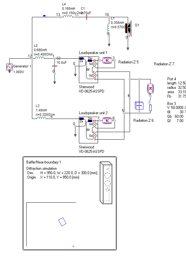 Составил модель в LSPcad 5.25. Вот тут начинается самое для меня непонятное. Каким-то образом люди считают фильтры в LSPcad 5.25 не учитывая при этом дифракционных явлений! Например тут http://www.troelsgravesen.dk/Diy_Lou...r_Projects.htm. И все сходится!!