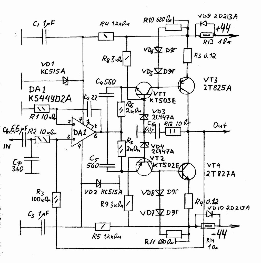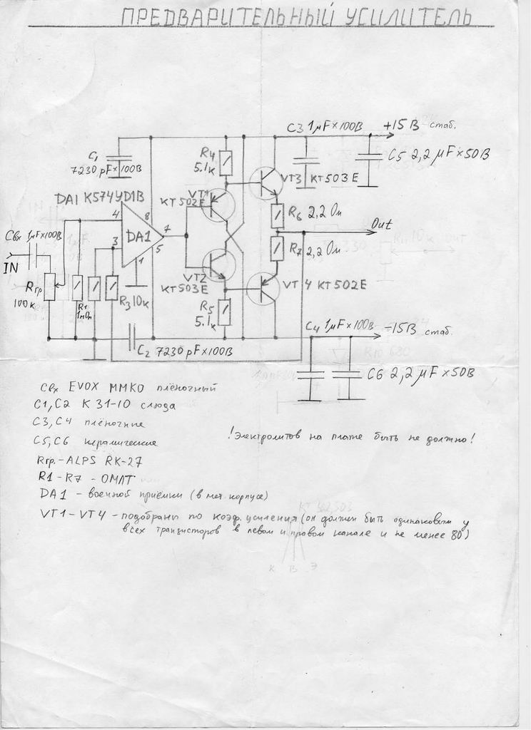 За основу взята именно она. С ее штатным операционником К574 мне ее тоже не удалось запустить нормально и переменные резисторы установки тока покоя, которые рекомендованы в статье, тоже не годятся, там нужны более надежные. Я применил многооборотные.
