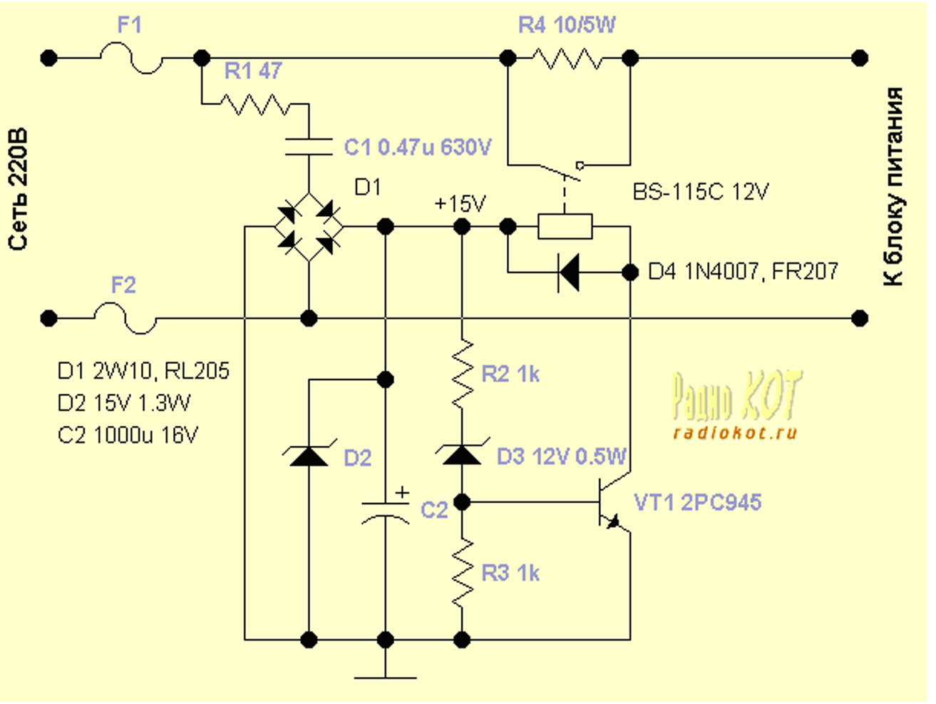 Вопрос третий, в блоке питания, Е1 и Е2, рядом с кондерами 15000мкф я так понимаю система плавного пуска, кто знает как ее простенько соорудить?