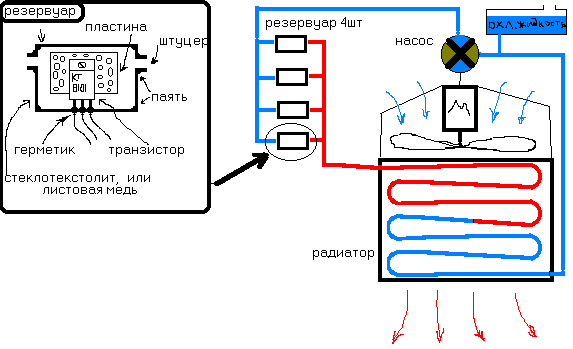 Вот тут промудохавшись с транзисторной схемотехникой ,пришла мне в голову бредовая идея, использовать в качестве охлаждающего элемента жидкость, а точнее- масло. У меня была ситуация ,когда в плату впаяны мощные транзисторы ,и нет места для подходящего радиатора с большой площадью. чё делать ?