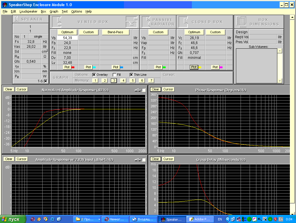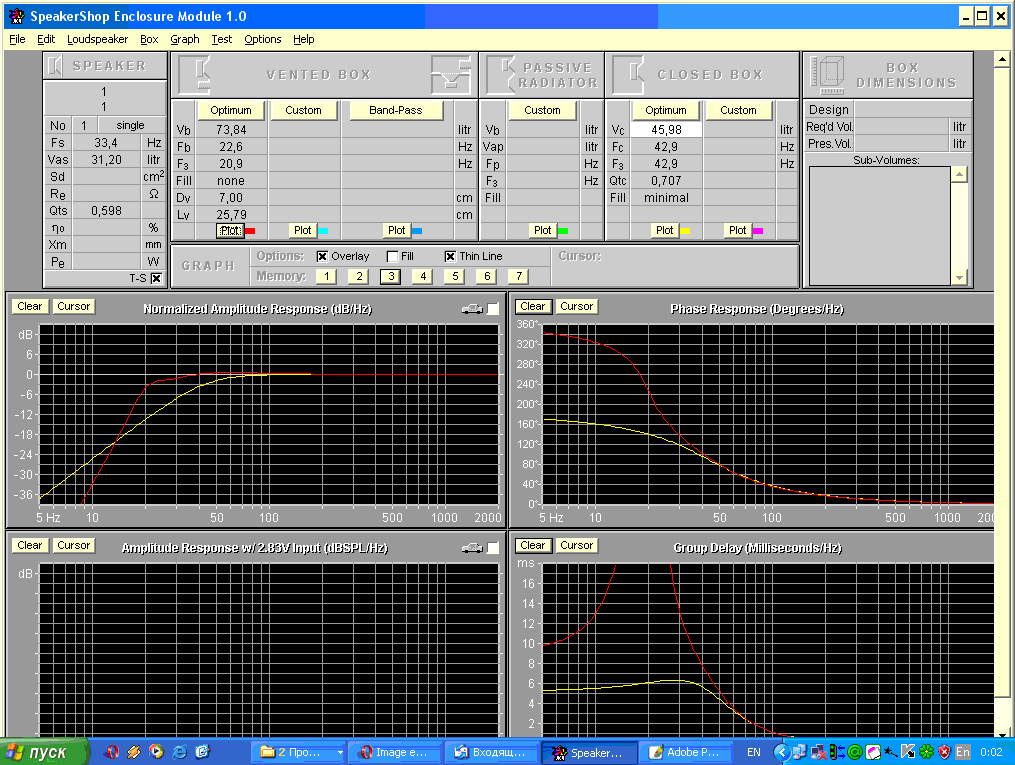 2: Qts=0.541; Vas= 42.53 л.; Fs=32.85 гц.