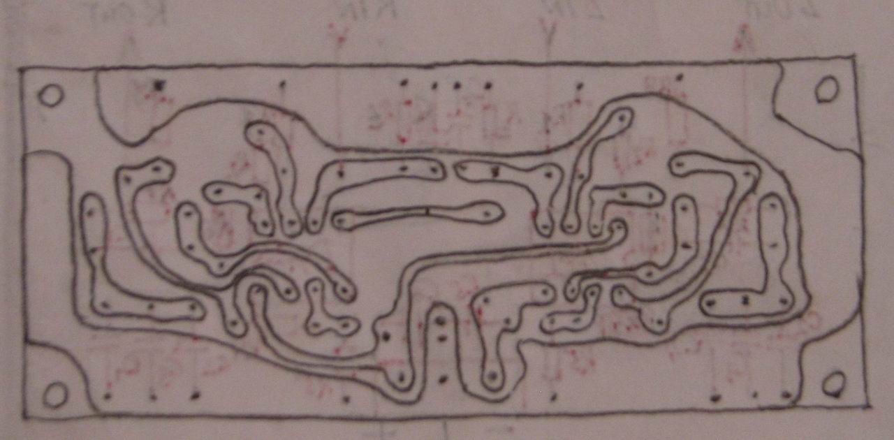 Разместил во вложении свой вариант печатной и платы (вид со стороны печати и со стороны деталей). Там же вариант схемы и цепи корреции, которые выбрал для себя. Нумерация деталей у меня не совпадает с оригиналом, но по рисунку все понятно. Размер платы 38Х90 мм