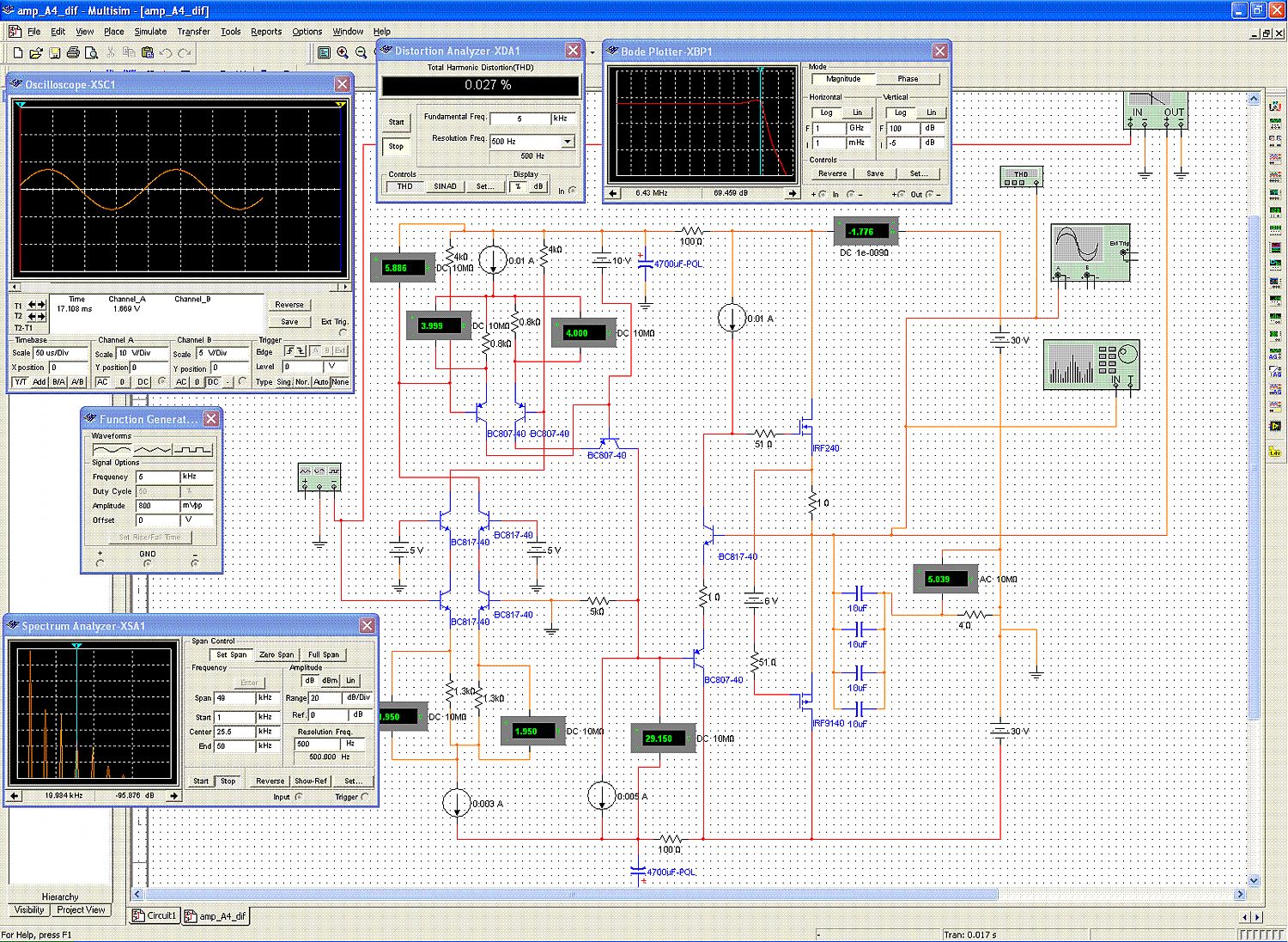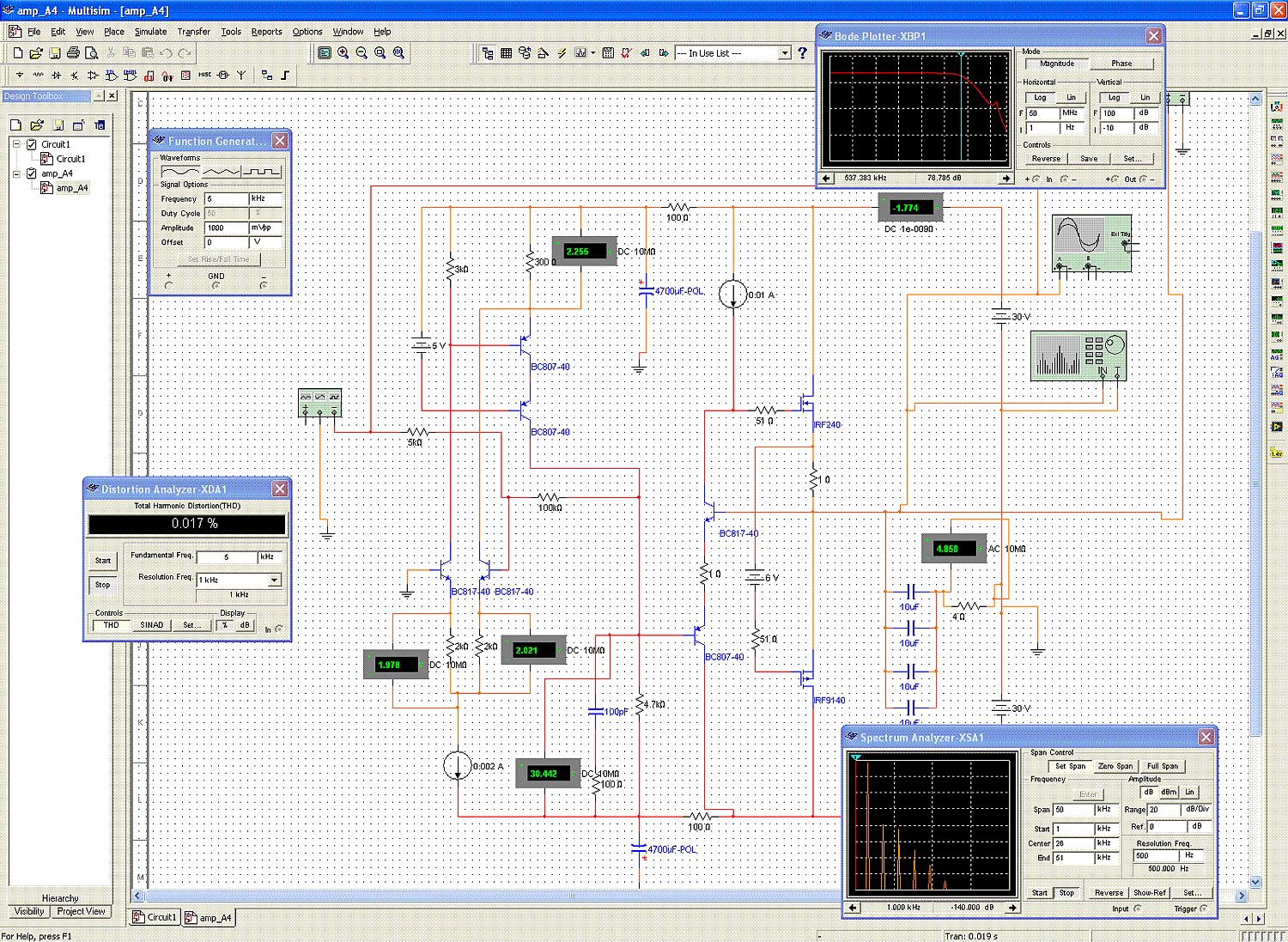Вобщем, у меня две программы, старый воркбенч и новый мультисим. Так вот воркбенч красивше отрисовывает но ничего толком не меряет