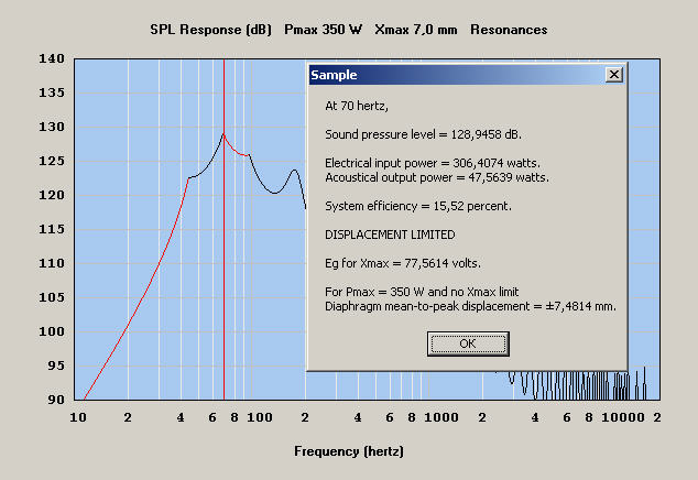 Вообще-то изначально это CUBO 15 (freespeakerplans),размеры изменил под 18-шку,странно то,что Xmax при 350 ваттах на 70 герцах=5 mm,а когда прога считает Max SPL,на тех же 70 герцах уже пипец -((