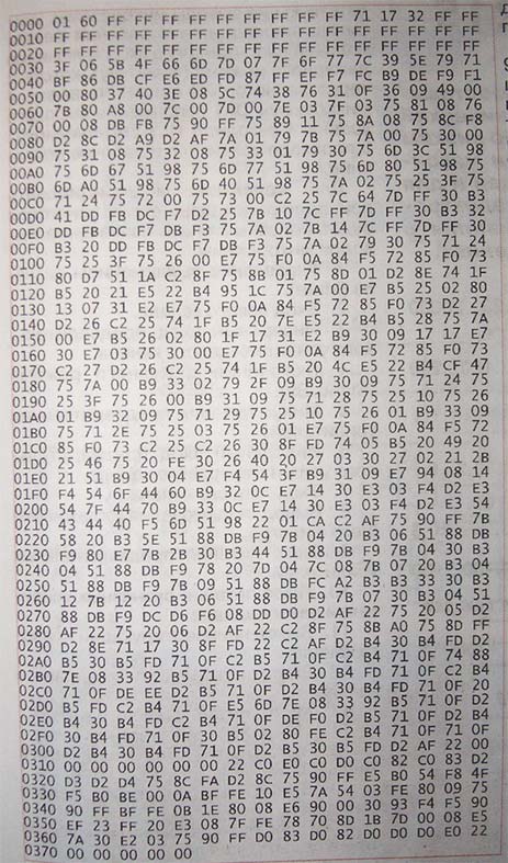 EFKO-есщё раз огромное спасибо.Но вот нет случайно возможносьти прислать второй ресунак там где HEX файл есщё раз(с чучуть большим разрешением),а то в самом верхнем левом углу несколько цифр немогу разобрать. pvleonid@mail.ru буду должнико на форуме по теме музыка