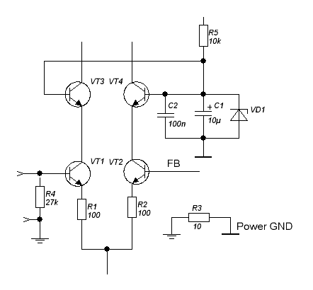 Тут я набросал схему (схемы блоков подробно не раскрывал, только то, что касается общего провода).