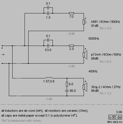 2. последовательно с сч и вч чтобы были резисторы 3-5 (или больше) Ом (для снижения IMD на СЧ).