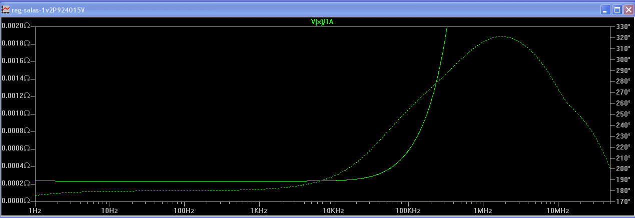 Я упражнялся с параллельными стабилизаторами на IRF для питания каскадов предварительного усиления УМ. Получалось, выходное сопротивление параллельников практически активное. Для звука очень хорошо было. Но специрульно этот вопрос я не исследовал, хотя хотел сделать ему импульсную нагрузку на полевке и попытать меандром.