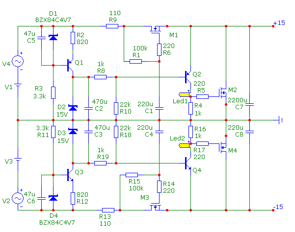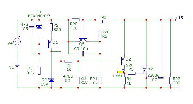 Это я вижу. А зачем ограничивать ток резистором, а после ставить транзисторный фильтр? Симулятор говорит, что так лучше?