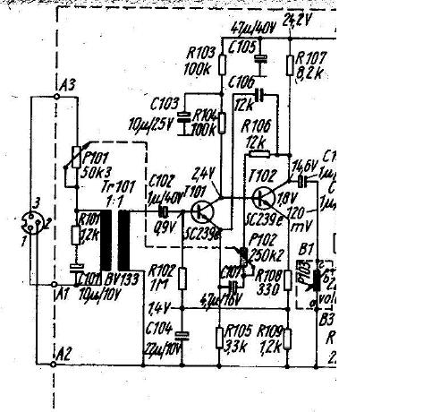 Ну, а если Вы, всё же, настаиваете на своём, то в первой схеме можно оставить одно плечо, например, VT1, VT2, нижний вывод R13 - на землю. К эмиттеру VT2 подключить любой транзисторный усилитель с Кус примерно 5 - да, хоть точно такой же, как на VT1, VT2, настроенный на нужный Кус. Остальные упрощения сами собой разумеющиеся, но если возникнут вопросы - рисуйте, и мы подкорректируем. Замечу, что Вы лишаетесь фантомного питания, уровеь гармоник значительно вырастет (даже без учёта искажений нового усилителя), микрофоны, возможно, начнут фонить (зависит от конкретной ЭМ обстановки в помещении).