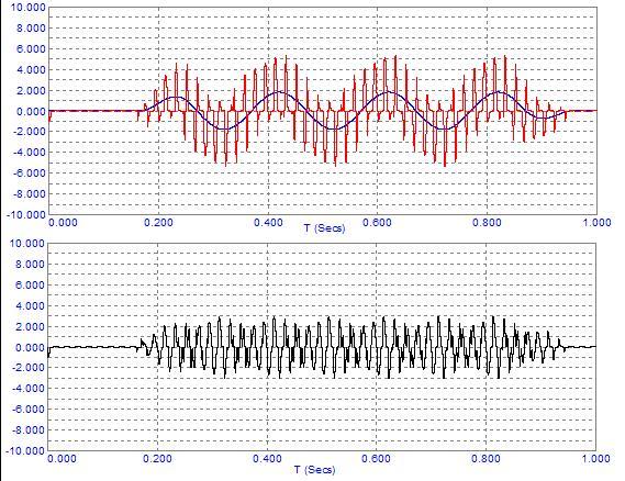 Да и "увидеть" осциллограммы насыщения сигналом "биений" зачастую довольно проблематично, Если биения имеют частоту, скажем, те-же 5 Гц, то увидеть картинку на обычном осциллографе будет сложно - период сигнала в секунду это просто слишком долго.
