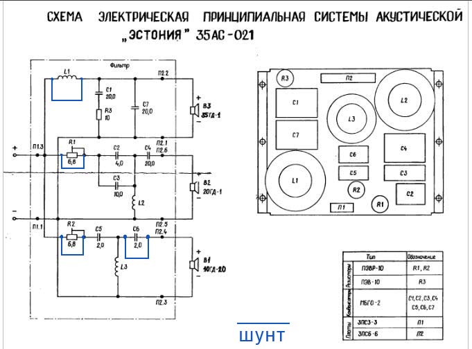 Пробовал доработку АС "Эстония 35АС-021" по схеме Николая Васильевича, результат не устроил. Внёс свои изменения в штатную схему фильтров. Звучание порадовало. Доработка свелась, главным образом, к шунтированию четырёх элементов в НЧ, СЧ и ВЧ фильтрах (L1, R1, R2, C6)