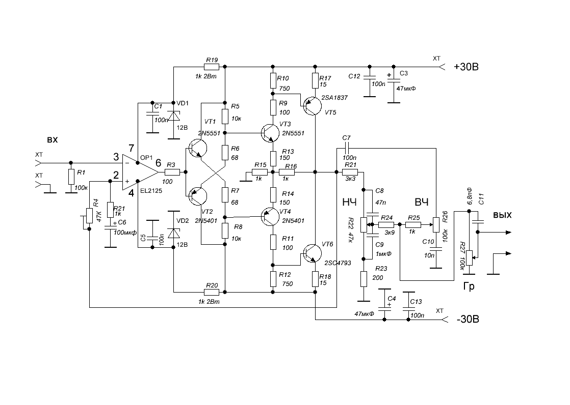 Здравствуйте уважаемые участники форума. Привлекла внимание микросхема EL2125 своими параметрами. Звучит очень достойно, но не могу избавиться от постоянки на выходе. На шестом выводе около 0,5 В, чуть шуршит громкость при регулировке. Использую вот в таком виде.