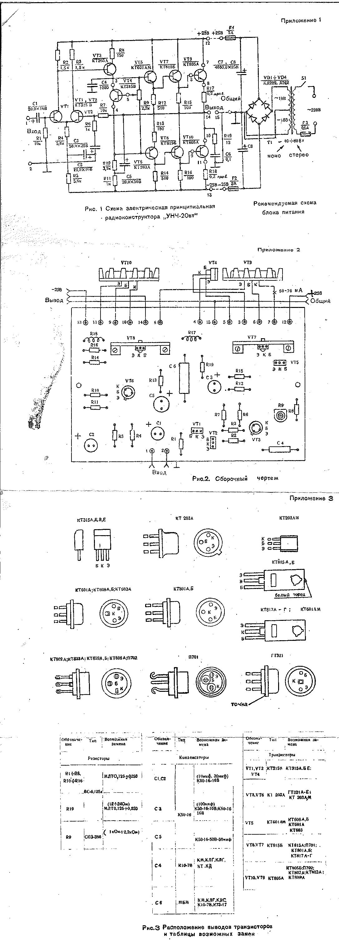 Выпускался ещё один подобный набор,схема почти такая-же только на плате расположено 2 канала. Назывался уже не УНЧ-20 а с четырёхзначным номером.