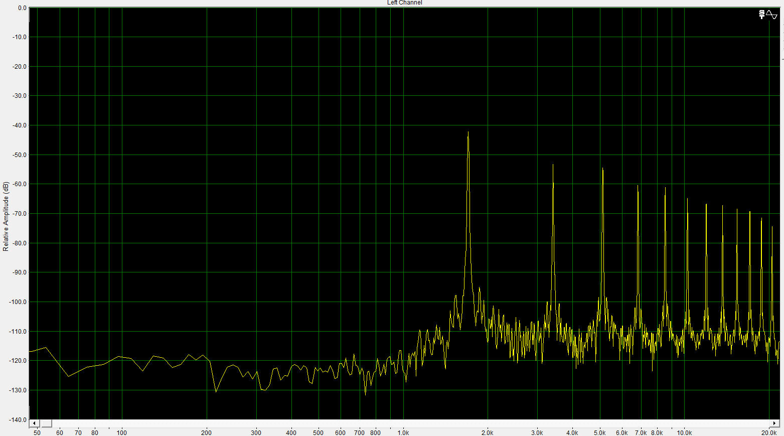 Осцилографа не было под рукой, померял аудиокартой. На выходе конденсатор Panasonic FK 10uf 35v без нагрузки