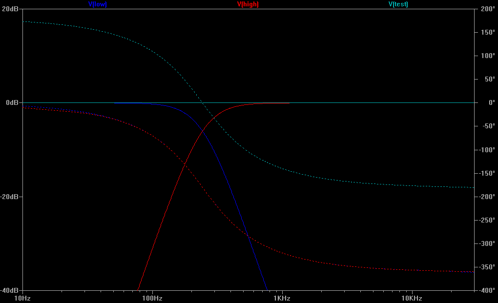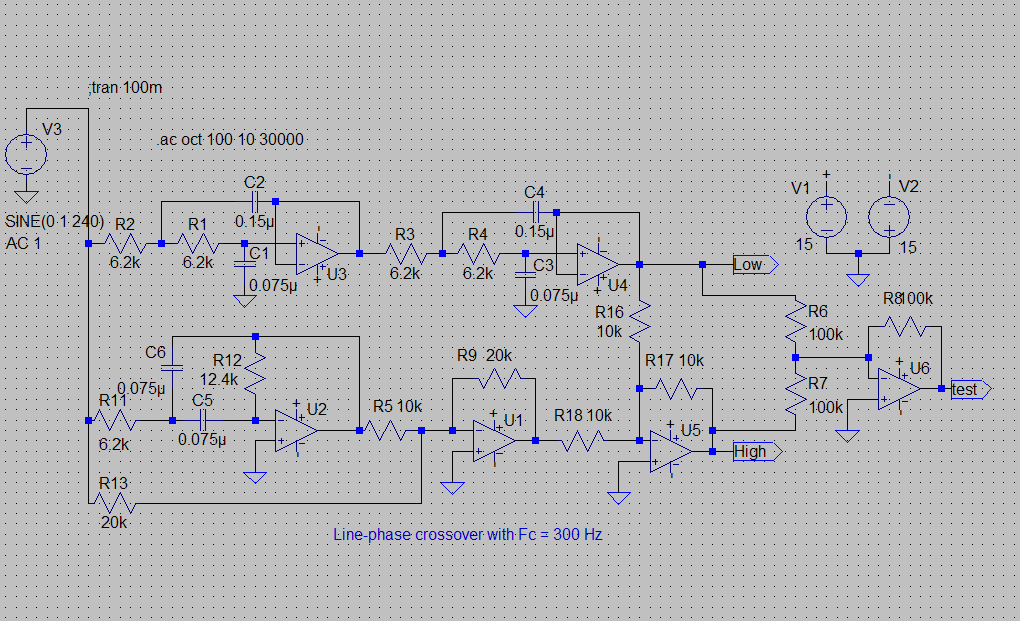 Вчера нарисовал в Микрокапе7 разделительный фильтр Линвитца на операционниках, 2-й порядок (LR2).