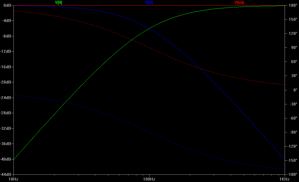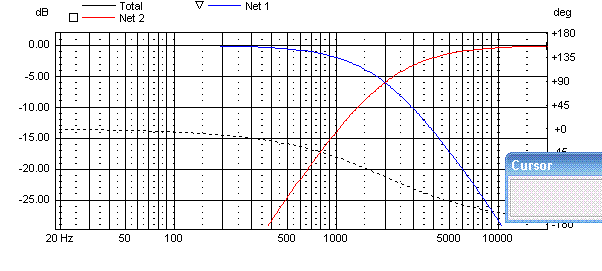 В районе частоты раздела - получил большой (до -12дб) провал, и довольно широкий (около 200гц, если по -3дб смотреть).